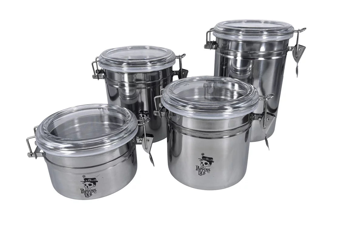 Poppins LAB Edelstahlbehälter kaufen, luftdichter Vorratsbehälter Edelstahl, Glasdeckel Aromadose, Kräuterbehälter Edelstahl, Kaffeedose Glasdeckel, Edelstahl Vorratsdose 800ml, Edelstahl Aromadose 1150ml, luftdichtes Gefäß 1400ml, Poppins LAB Behälter 1800ml, Aufbewahrungsdose Küche Edelstahl